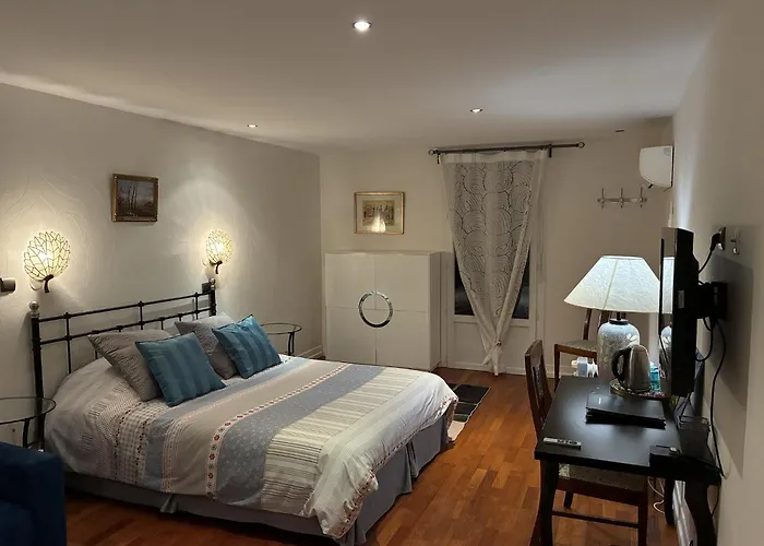 O hotel está situado a cerca de 50 km do aeroporto em Grenoble e nas proximidades dos locais culturais como Museu de Grenoble. Villa Atmosphere Petit Dejeuner Compris está siatuado a 10 minutos de carro da Universidade de Stendhal. Propriedade também fica à um curto caminho dos Alpes. Localizado a apenas 1.8 km da Bastilha, este hotel coloca a cidade ao seu alcance. A paragem de autocarros Menon encontra-se a 5 minutos de distância a pé.